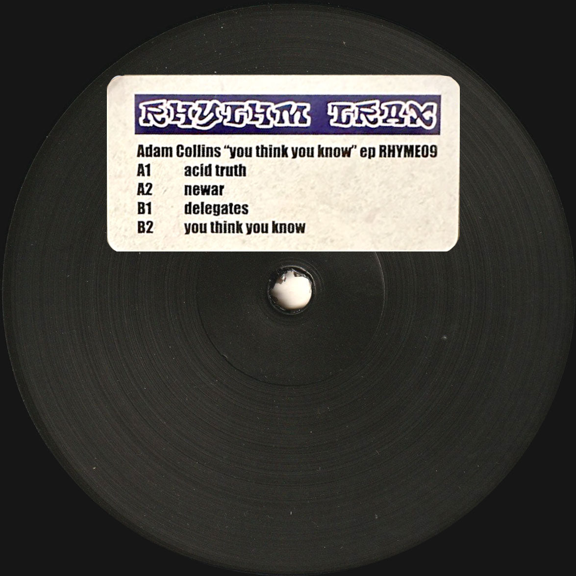 The latest release from Rhythm Trax , an underground tech-house label from Vienna run by Chris Wallner , is a new EP by Adam Collins, one half of the popular American tech-house duo OMNI AM ! A1 is a pounding acid bass track, A2 is a deep track that slowly develops with hypnotic bleeps, B1 is influenced by the underground sound of London, and B2 progresses with tight house beats and effectively inserted voice samples! All the tracks are of the same high quality, making this a fantastic work!